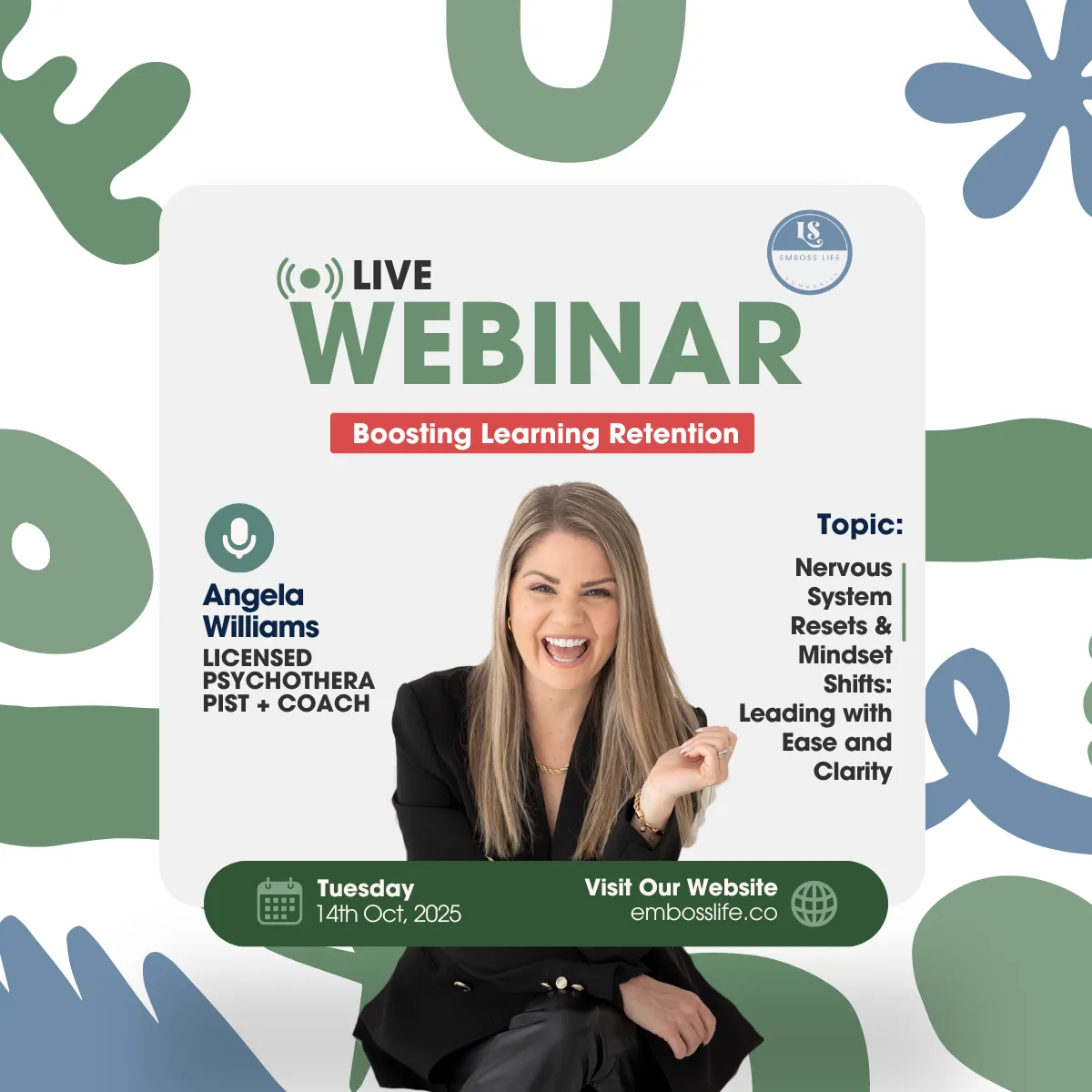 Join Angela Williams, Licensed Psychotherapist + Coach, for a powerful session on boosting learning retention through nervous system resets and mindset shifts.